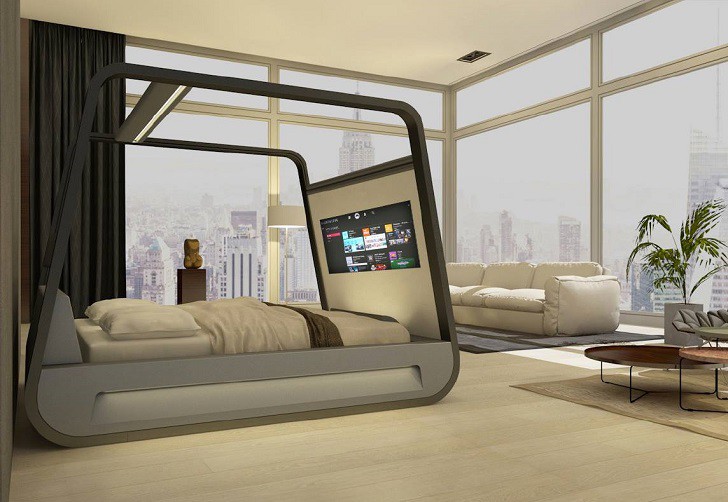 4. Nhà thiết kế người Ý, Eduardo Carlino đã tạo ra chiếc giường Hi-Can này. Nó được trang bị màn hình, máy chiếu và loa. Nó là phương án hoàn hảo cho những người thích thưởng thức các bộ phim yêu thích hoặc chơi trò chơi trước khi đi ngủ. Nó cũng được trang bị rèm cuốn có thể cung cấp sự riêng tư.