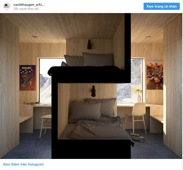 7. Giường tầng này được tạo ra bởi Vardehaugen và nó thực sự trông không giống như một chiếc giường tầng cổ điển. Các không gian ngủ được nằm trong các phòng khác nhau. Đó là lý do tại sao nó có thể được sử dụng để ngủ và cũng như để chia không gian.