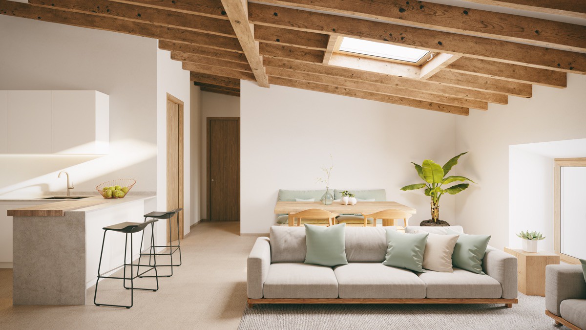 13. Những mái nhà tự nhiên Chunky trông đẹp, chắc chắn, nhưng hơi nặng nề. Loại bỏ một phần mái dầm để hứng ánh sáng tự nhiên ngoài trời vào nhà sẽ làm sáng và không gian đẹp hơn hẳn.