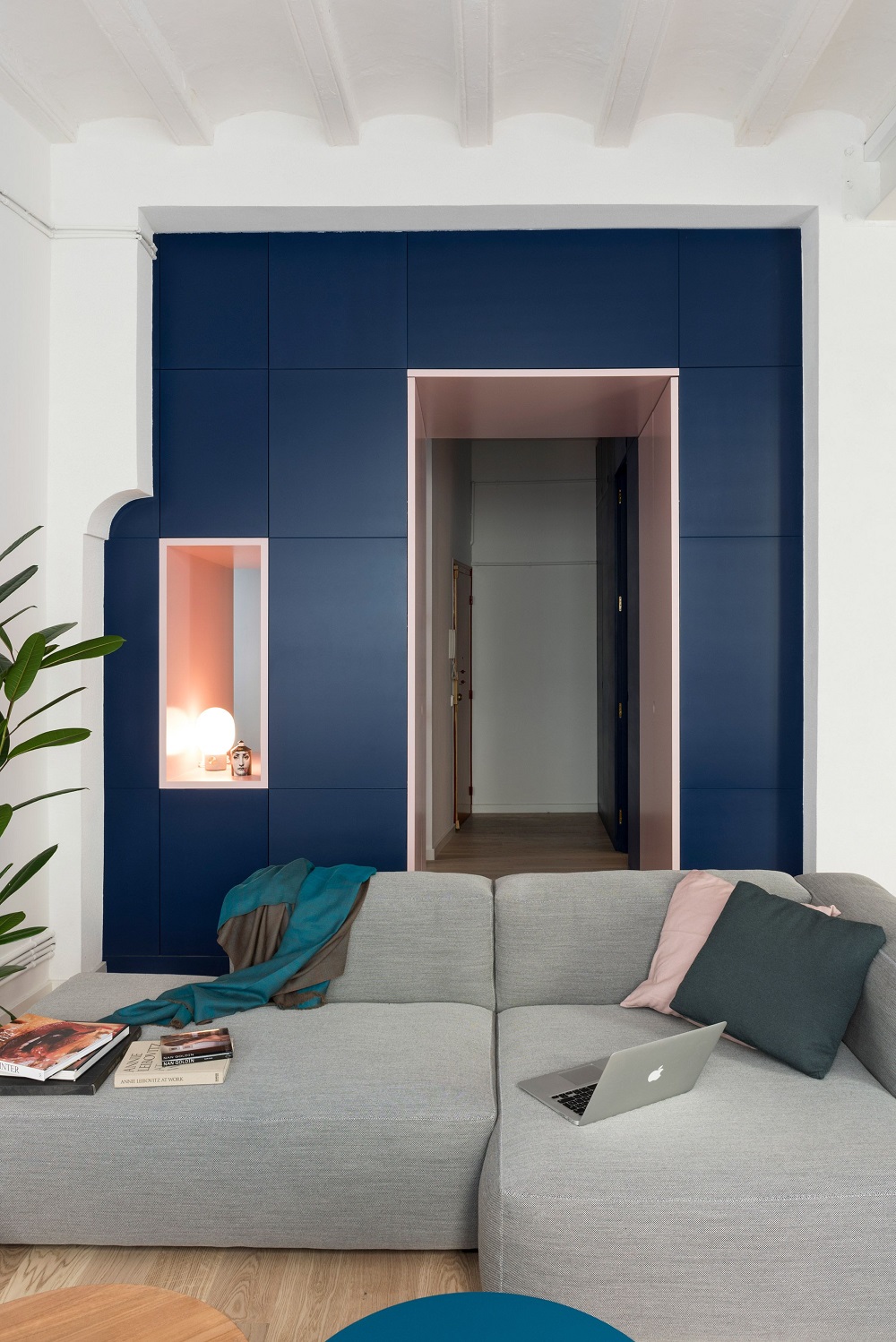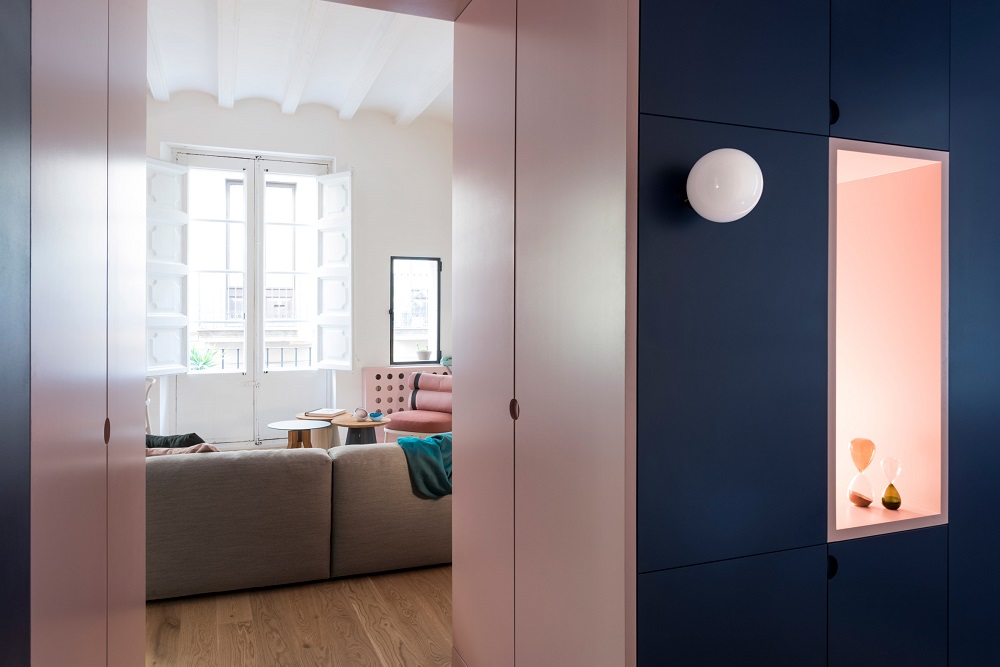 Barcelona, Tây Ban Nha là một thành phố rất nổi tiếng bởi sự vui tươi, sáng tạo, độc đáo với đa màu sắc. Thiết kế của căn hộ này hiện đại, màu sắc ngọt ngào mang hơi thở vintage. Căn hộ nhỏ này nằm trong một tòa nhà dân cư có từ thế kỷ 13 và được cải tạo lại bởi Colombo và kiến trúc sư Serboli. Việc đầu tiên họ làm là phá hủy các bức tường trong căn hộ hiện đang có, hầu như là tất cả các bức tường đã bị phá hủy đi. Để tạo ra sự tách biệt giữa các không gian và khu vực sinh sống chính, kiến trúc sư đã sử dụng những nội thất lưu trữ có độ cao để tạo hiệu ứng ngăn cách.