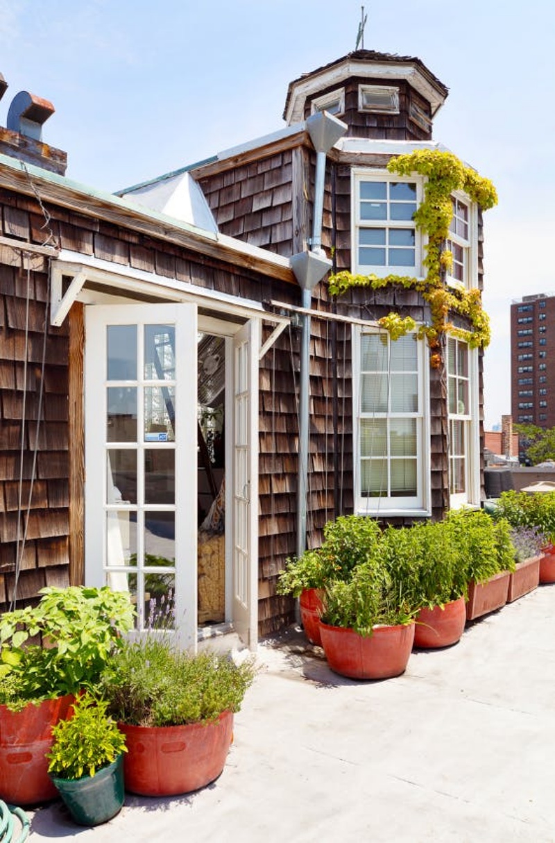 Những ô cửa được trồng cây leo kèm theo màu xanh nhẹ nhàng đủ để khiến mọi người tạm quên rằng mình đang sống ở thành phố hoa lệ và nhộn nhịp bậc nhất nước Mỹ. Căn nhà gồm 2 tầng với diện tích lên đến 800m2, nét độc đáo của căn nhà còn nằm ở phần mái lợp bằng gỗ đầy cổ kính và ấn tượng.