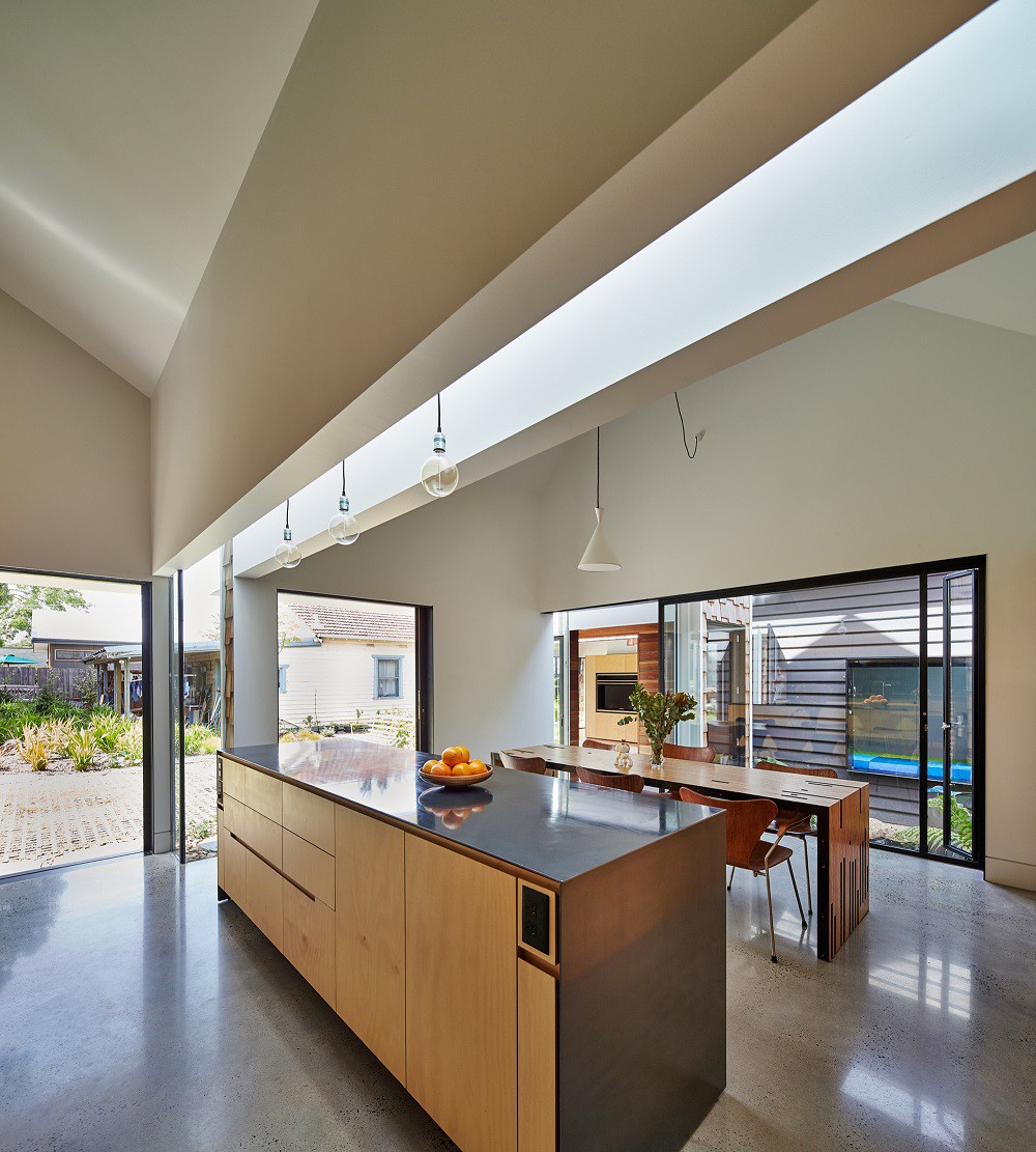Ngôi nhà không có tường ngăn giữa các không gian để giúp không gian mở và nội thất cũng được sắp xếp theo chiều ngang (điều trái ngược hoàn toàn với những ngôi nhà truyền thống kiểu Úc).