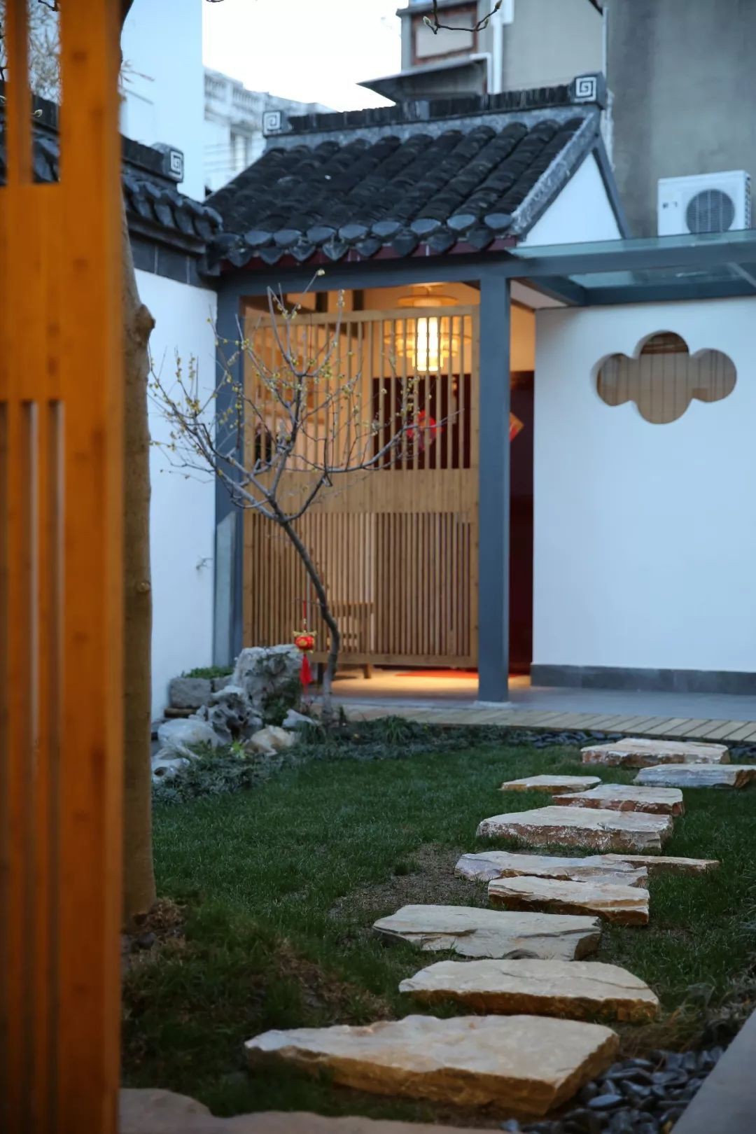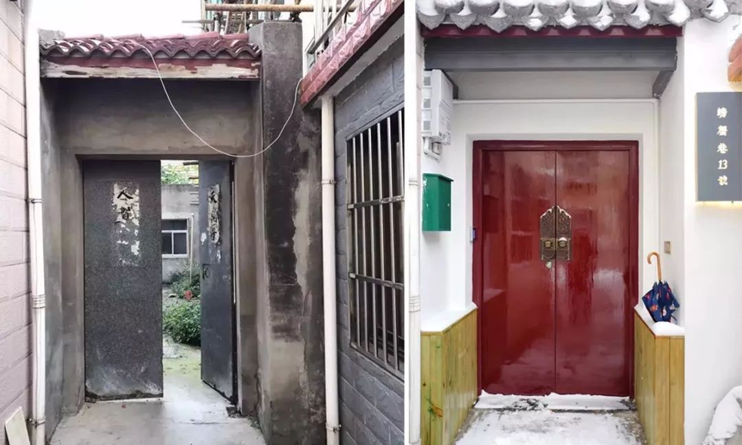 Ngôi nhà được Huan Yan cải tạo từ cổng. Lối vào nhỏ xinh được cô gái cải tạo đơn giản nhờ việc sơn lại tường, ốp thêm gỗ ở thành tường và thay cửa cổng bằng cửa gỗ sơn đỏ giống với những căn nhà truyền thống Trung Hoa từ xưa.