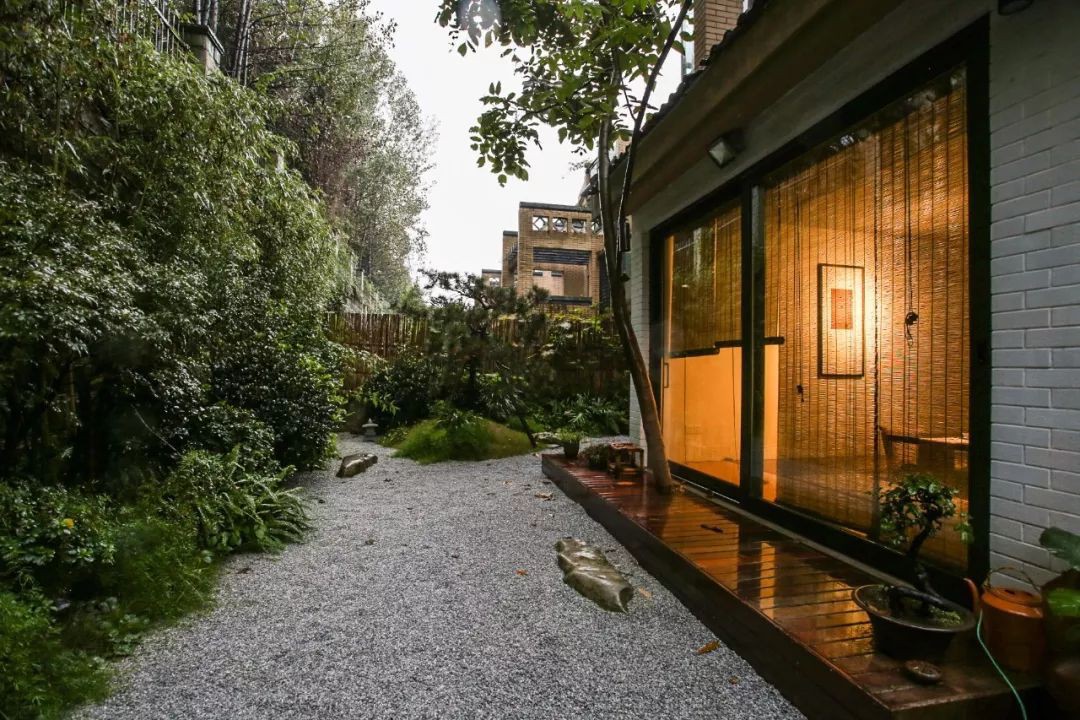 Khoảng sân vườn bên ngoài cũng được vợ chồng cô thiết kế theo phong cách Zen, từng góc nhỏ đẹp bình yên và cũng đầy ấn tượng. Dan Xia cũng chia sẻ thêm về câu chuyện tình yêu của họ. Ban đầu chỉ là mối quan hệ của đồng nghiệp với nhau. Cũng vì mến nhau, họ quyết định đến với nhau, nắm tay nhau hơn 10 năm trước khi quyết định kết hôn.