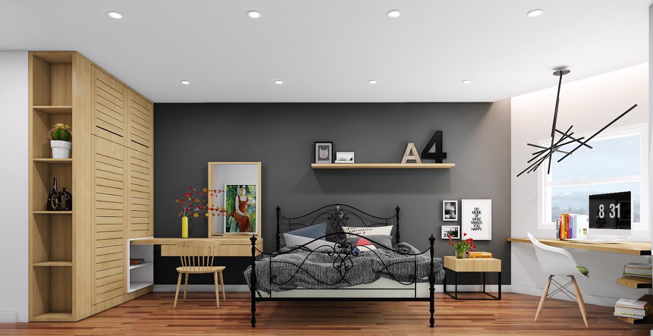 Sự đơn giản trong bố cục không gian, tổ chức mặt bằng tự do, phi đối xứng là những biểu hiện đặc trưng của phong cách nội thất hiện đại. Các cặp đôi có thể xem đây là gợi ý dành cho căn phòng của mình.