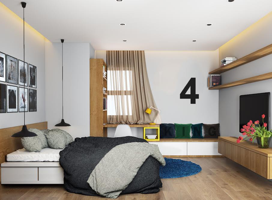 Không gian vừa hiện đại, vừa ấm cúng thích hợp cho những cặp vợ chồng mới cưới thích sự sáng tạo và cá tính.
