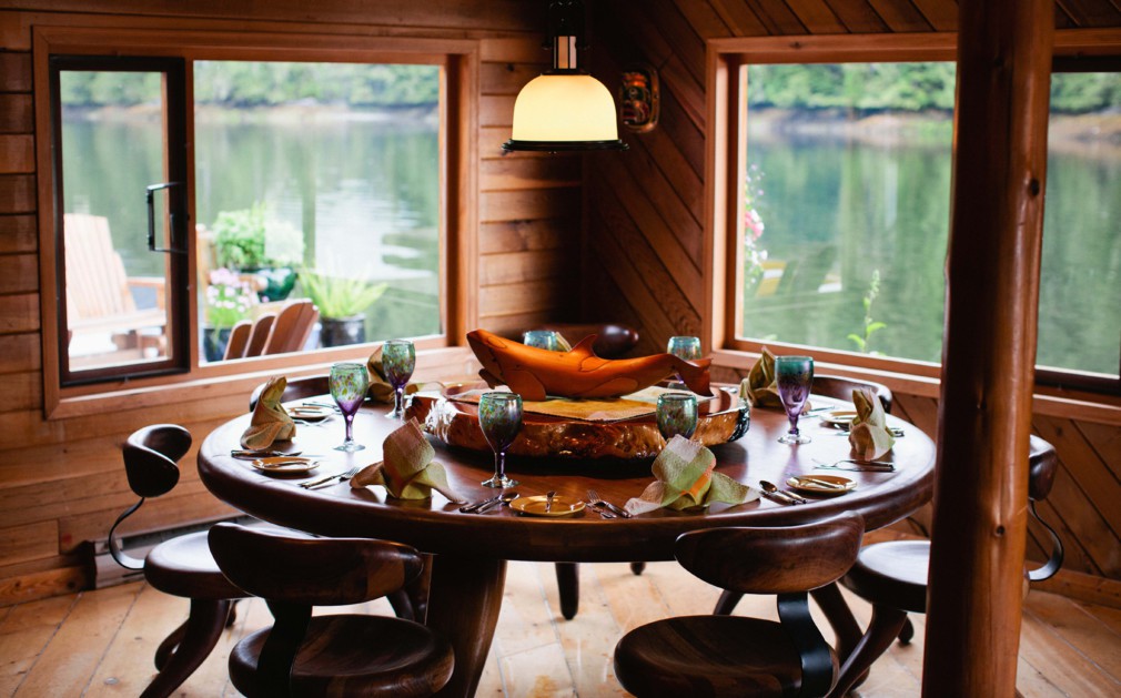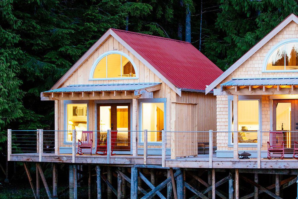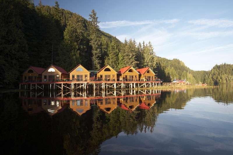 Những căn nhà nhỏ được xây đơn giản với vật liệu từ gỗ của địa phương. Khu vực quần đảo Broughton xanh mát cây tách biệt với thành phố. Vì thế, mọi người muốn đến đây cần phải di chuyển bằng trực thăng. Tuy có thể đường giao thông đi lại vất vả nhưng ở bất kỳ góc độ nào, bạn có thể thu trọn vẻ đẹp kỳ thú của thiên nhiên trong tầm mắt.