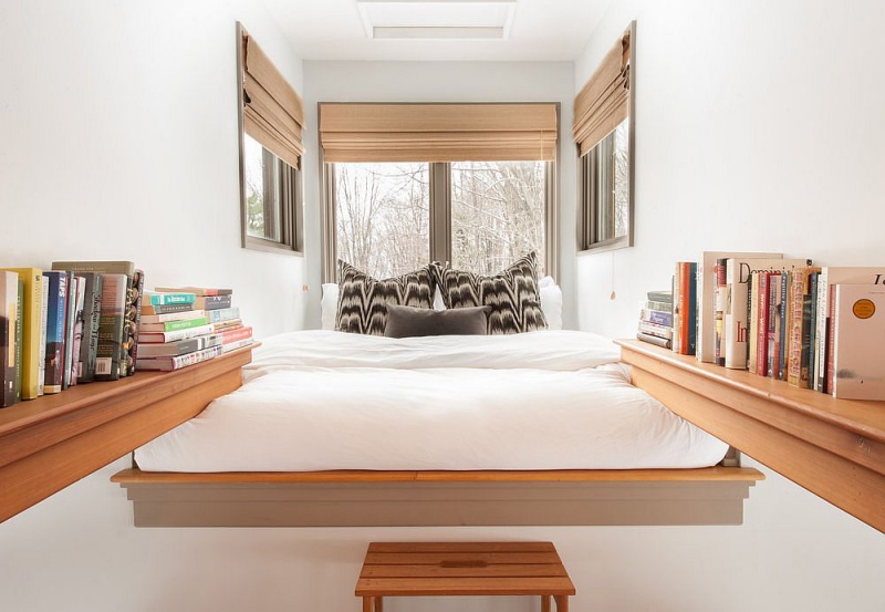 Góc nghỉ ngơi được bố trí trên gác xép. Gác xép của ngôi nhà nhỏ được thiết kế khá ấn tượng, đơn giản và chắc chắn với khung kim loại cố định bên dưới, lắp đặt sàn gỗ mát mẻ bên trên.