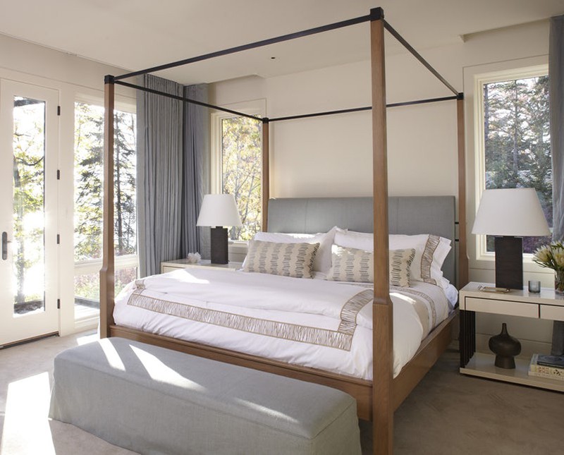 Mẫu giường Canopy bằng gỗ tự nhiên với lối thiết kế đơn giản mang đến người dùng không gian phòng ngủ bình yên, thư thái.