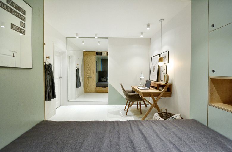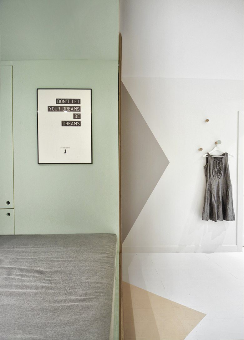 Ban đầu, không gian nhỏ được bố trí khá lộn xộn và có phần hơi bừa bộn, khiến cô gái nhỏ cảm thấy bức bối và chật chội, khi mỗi khoảng diện tích đều bí bách và nhìn đâu cũng thấy đồ. Từ quần áo, tủ đựng đồ, giường ngủ, chăn màn, sách vở hay bàn học, dù sắp xếp gọn gàng đến đâu thì sự hiện diện của quá nhiều nội thất, vật dụng cũng khiến cho không gian như nhỏ lại. Vì thế, một phương án được đưa ra, đó là sử dụng những nội thất đa năng. Mỗi một khu vực đều được "chồng" nhiều chức năng lên nhau, nhưng vẫn đảm bảo sự quy củ và ngay ngắn, giúp cô gái yêu hơn mỗi góc nhỏ trong căn phòng bé xíu của mình.